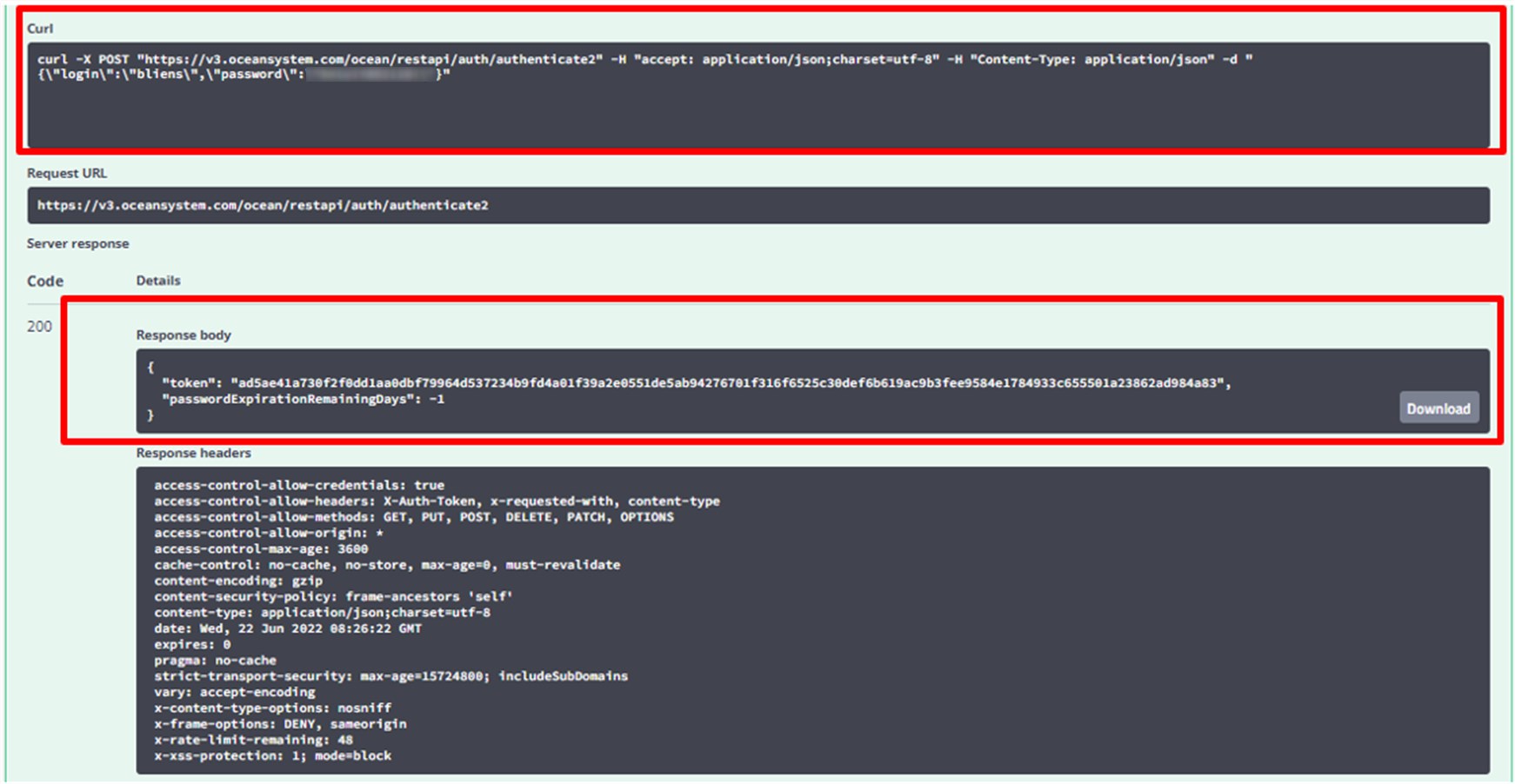 | Url de base | https://v3.oceansystem.com/ocean-3.0.0/apidocs | Environnement de production |