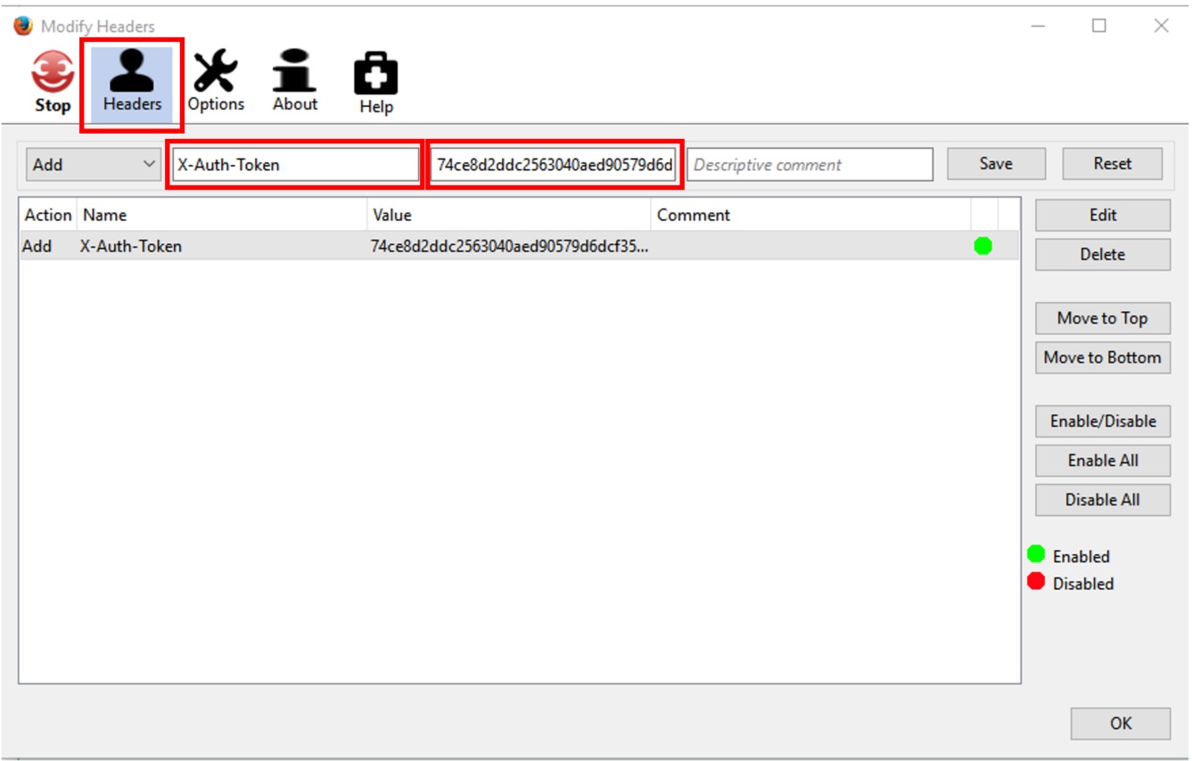 Une fois l’extension ajoutée, il faut cliquer sur « Open Modify Headers » et entrer les informations suivantes :